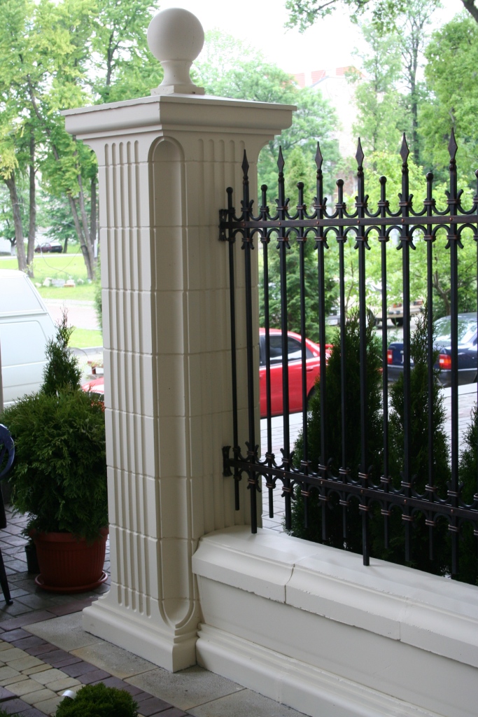 Колонна из четырех основных элементов: базы, набора секцій, капители (фигурный козырек) и шара. |