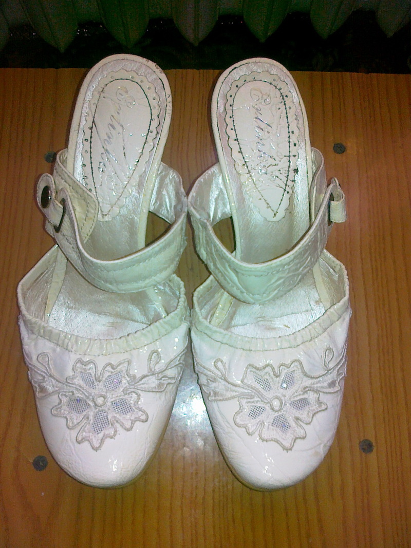 Гарненькі білі шльопки з закритим передом. Розмір 36. Були взуті 1 раз, набойки цілі, носики не поцарапані! Без слідів носіння, не розтягнуті! Продаю, бо немаю де складати! При покупці декількох речей - - роблю ЗНИЖКУ! ПЕРЕСИЛАЮ ТІЛЬКИ НОВОЮ ПОШТОЮ! |