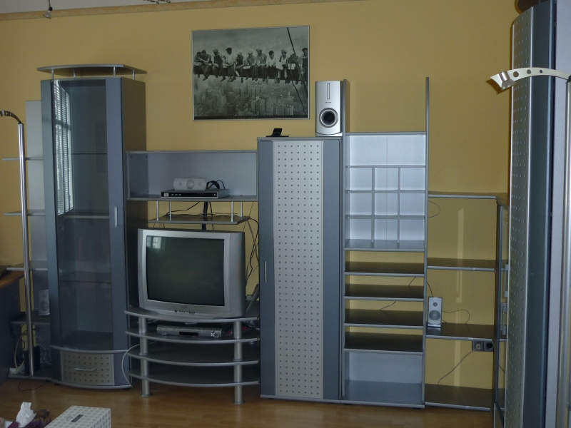 Продаю меблі: 1) М"яка шкіряна гарнітура (куток 2.60 х 2.30) кольору слонової кості - 600 Євро; 2) Шкіряний диван чорного кольору (1.80м) - 300 Євро. 3) Стінка для вітальні сріблястого кольору (заг.довжина - 5.5м) - 400 Євро. Всі меблі з Австрії, майже в ідеальному стані. Фото вишлю. |