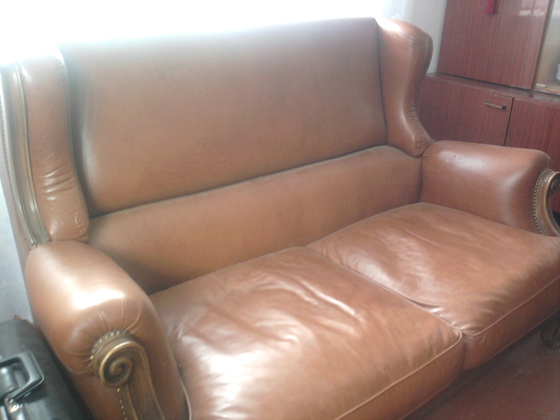 1 кожаный диван, 2 кресла, 4 стула. Натуральная кожа+дерево. Возможен торг, обмен. |