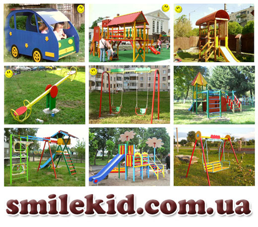 Ігрове устаткування для дитячих майданчиків: дитячі ігрові комплекси, пісочниці, гойдалки, дитячі будиночки, вуличні тренажери і спортивні майданчики та ін. - www.smilekid.com.ua