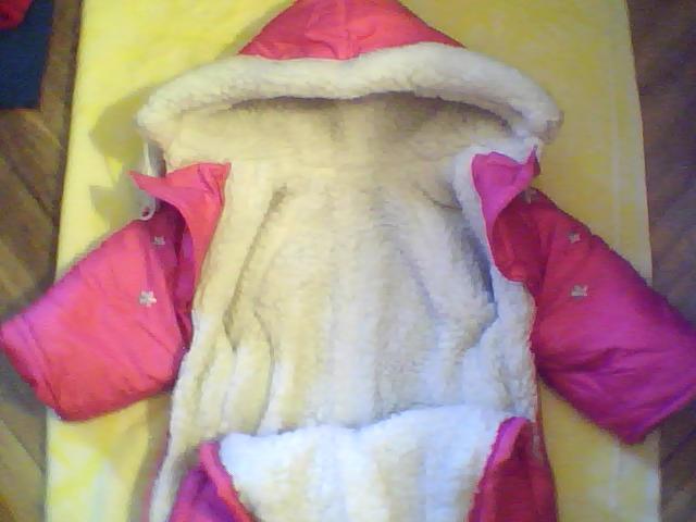 Продам: Зимний розовый комбинезон-трансформер для ребенка от 0 до 12 мес. Материал верха -плотная плащевая ткань, внутри -овчина. Манжеты на руках не закрываются, но в комплекте идут рукавички, на ножки идут теплые пинетки. Комбинезон можно носить конвертом или с пинетками. Комбинезон удобный и теплый для малыша. Состояние идеальное ребенок только лежал и сидел в коляске.Возможна пересылка. |