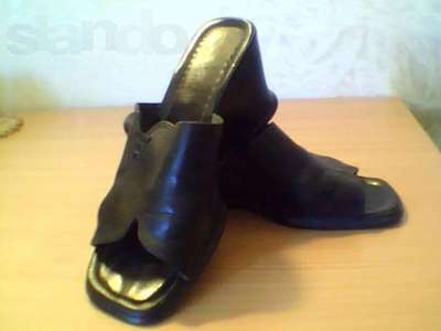 Шлепанцы кожаные черные.Платформа 7 см. Размер 39 на широкую ногу.Очень удобные. |