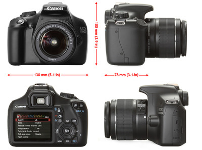 Canon Digital EOS 1100D 18-55 IS II kit - это простая в пользовании, компактная цифровая фотокамера, которая станет замечательным подарком и для начинающего фотолюбителя, и для профессионала. Камера отличается очень легким корпусом - всего 495 граммов и применением разных технологий, улучшающих качество снимков. Например, в фотокамере используется процессор DIGIC 4, также режим просмотра в настоящем времени. А четырёхступенчатый стабилизатор изображения дает возможность делать замечательные фотографии в условиях минимального освещения. Фотокамера оснащена датчиком CMOS с разрешением рабочих 12,2 мегапикселей, широкой девятиточечной системой автофокусировки (AF) с центральным перекрестным датчиком, потенциалом непрерывной съёмки со скоростью до трех кадров в секунду, а RAW - около 2 кадров в секунду. К тому же данная фотокамера поддерживает высокоточную систему вспышек, которая учитывает дистанцию до объекта съёмки. Фотоаппарат оборудован ЖК-дисплеем с диагональю 2,7 дюймов с углом охвата около ста процентов и углом обзора и по горизонтали и по вертикали приблизительно 160 градусов.