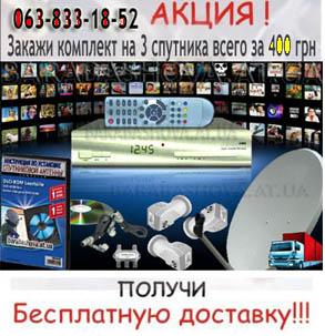 Так же вы можете купить 1 комплект на 3 спутника спутникового ТВ для самостоятельной установки с доставкой из Харькова в другие города Украины всего за 430 грн в розницу и по оптовым ценам от 3 комплектов или заказать любое спутниковое оборудование отдельно с доставкой.