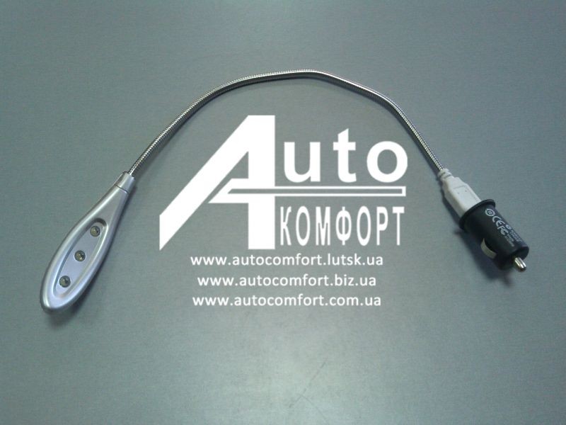 Чтобы в Вашем автомобиле было светло и красиво, рекомендуем установить подсветку – лампу, которая сможет точечно освещать определенные части в салоне автомобиля. При помощи подсветки – лампы вы сможете читать в автомобиле в темное время суток, так как источник освещения может перемещаться при помощи изгибов головки светильника, как видно на фото. Вы можете заказать светильник на нашем сайте через форму заказа. Рекомендуем уточнить наличие, цену и расцветку перед заказом. |