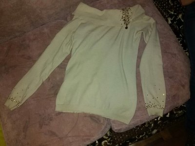 Хороша жіноча кофта,у гарному станні,на комірі та рукавах є камінці. Розмір 46-48. Можливі додаткові заміри, кого цікавить запитуйте :) |