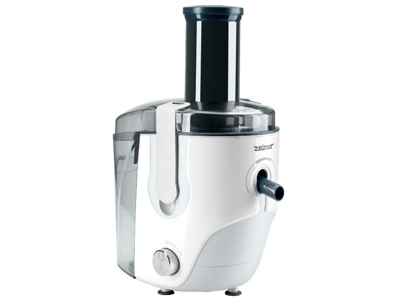Соковыжималка Zelmer ZJE1000S имеет 2 скоростных режима для фруктов и овощей различной твердости. Мякоть автоматически отбрасывается в прозрачный пластиковый контейнер емкостью 2 л, а сок подается в отдельностоящий стакан объемом 800 мл.