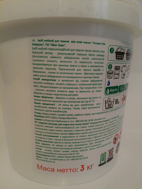Порошок для стирки Silver Clean не содержит фосфатов, следовательно не вызывает аллергию, им смело можно стирать нижнее бельё и постель.
