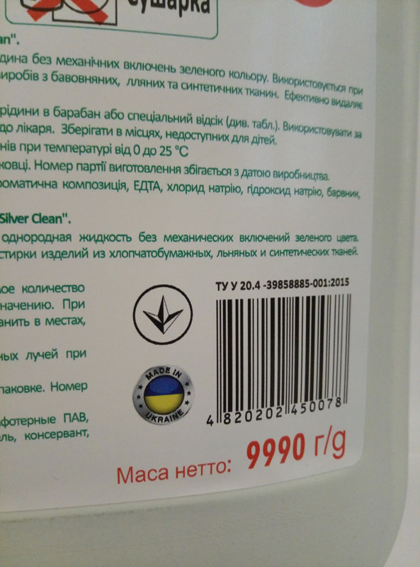 Пропонуємо універсальний засіб для прання - рідкий пральний порошок Silver Clean 10l, який не поступається за якістю відомим брендам таким, як Аріель, Персіл, Тайд, та має всі переваги звичайного порошку. Silver Clean додає одягу приємний аромат, швидко розчиняється у воді, глибоко проникає у волокна тканини і дієво усуває плями від жиру. Гель для прання Silver Clean містить компоненти, які перешкоджають утворенню накипу і вапняного нальоту в пральних машинах, підходить для машинного прання. Не подразнює шкіру рук. Універсальний гель, для прання білих і світлих кольорових речей Silver Clean 10 L Universal, Color, Свіжість лаванди - це оптимальне рішення для щоденного прання! Silver Clean додасть Вашій білизні дійсно бездоганну чистоту. Оптова ціна 210 грн., при замовленні від 3000 грн (можна в асортименті). Роздрібна ціна 250 грн. Українське виробництво. Європейська сировина та технологія. Даний продукт має усі відповідні дозвільні документи http://silverclean.in.ua