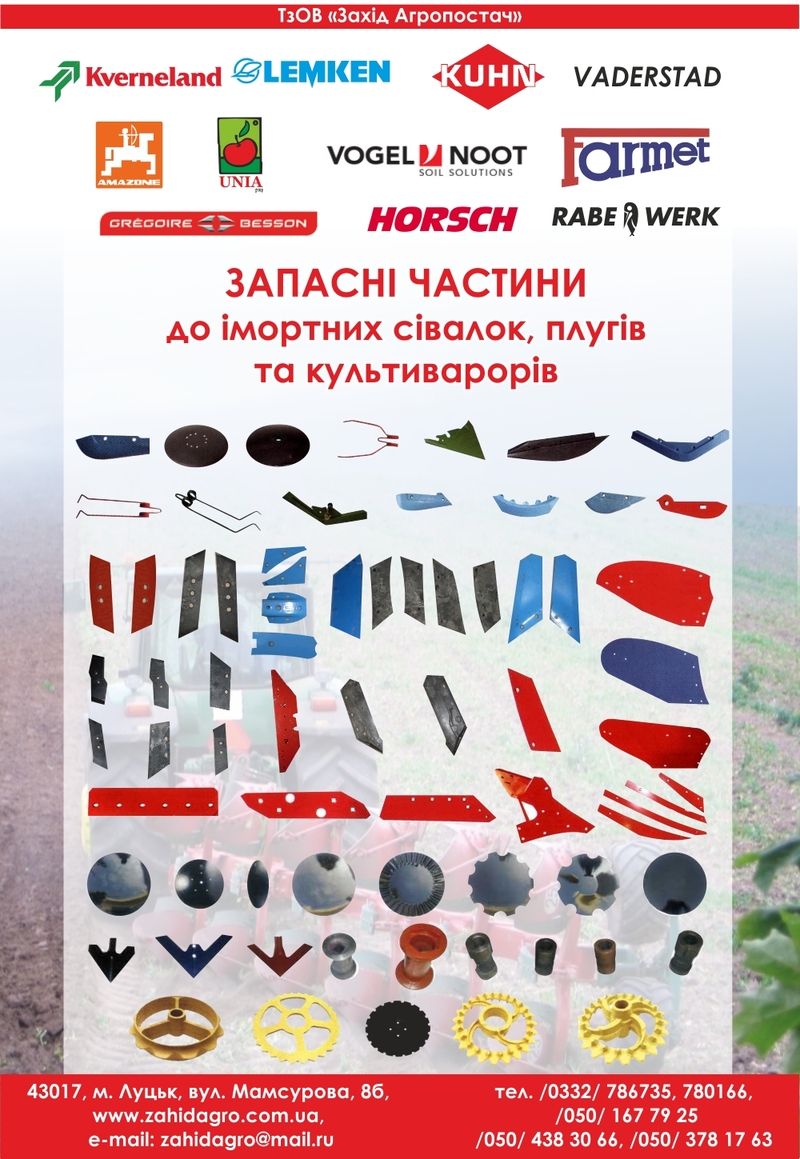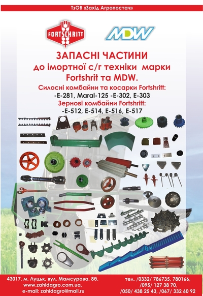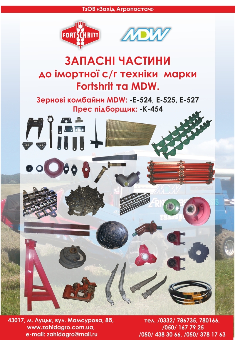 - широкий ассортимент как оригинальных, так и неоригинальных (альтернативных) запчастей к сельхозтехнике со склада предприятия и под заказ (Европа) по приемлемым ценам,